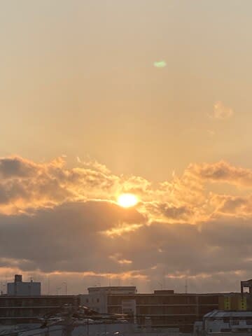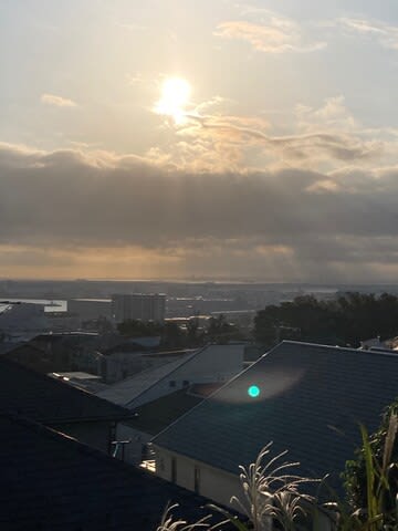 今朝の朝ウォーキングで外へ出ると朝日がまだ低く