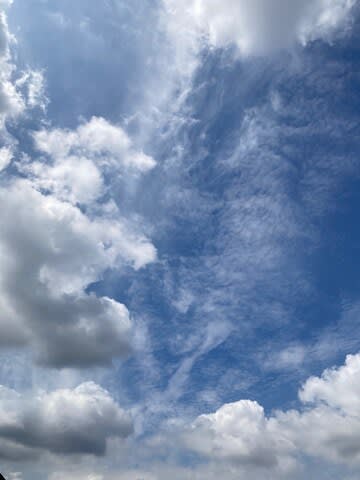 面白いのは、鱗雲っぽい雲と、もこもこ雲。高さが違います。