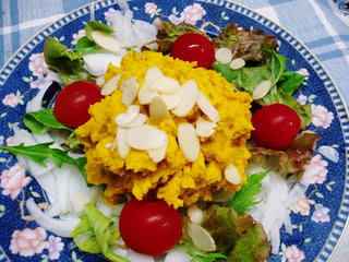 この頃会社近くにできたナチュラルローソンで購入した、サラダ6点盛りのお弁当がとっても美味。その中のかぼちゃサラダをまねっこして作っちゃいました。