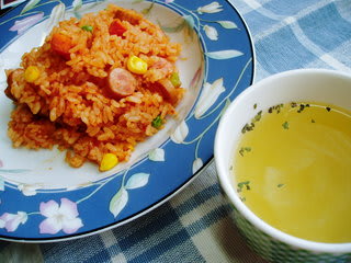 ケチャップライスは、トマトソースも入れてコクを出しました。