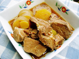 あっさり和風の煮物にしたかったので、途中一度冷蔵庫で冷やして固まった脂を取り除き、再度煮込みました。