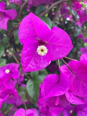 ブーゲンビリアのお花の中にまた白い小さいお花…。ということは、ピンクのは葉っぱ??