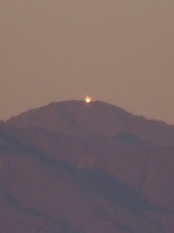 おや。富士山のならびに見える丹沢の山の上に灯りが。