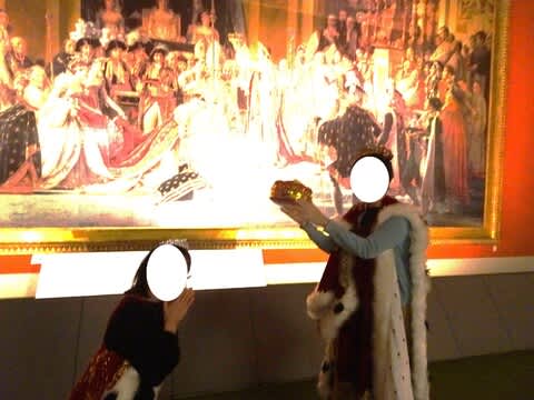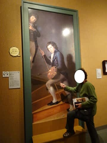 陶板焼きの絵画と一緒にポーズをとって遊びだします。
