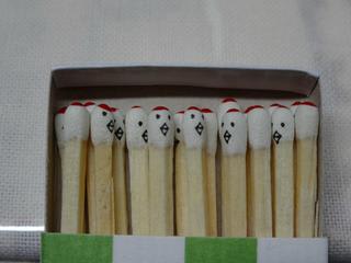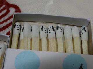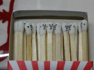 マッチ。マッチ一本一本に、犬、鶴、こけしのお顔が書いてあるの!