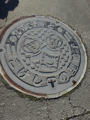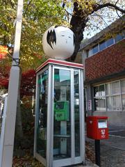 巨大なこけし電話ボックス こけしマンホールに、足湯