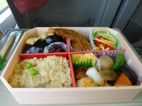 夕食を考えて、母と半分こしましたが、名古屋の名物がいろいろ入った楽しいお弁当です。