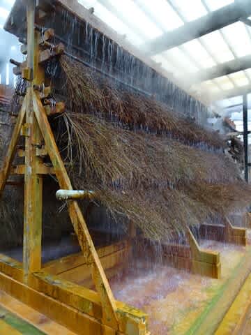 源泉は100度近いので、竹の枝を使って温度を下げているのだそうです。