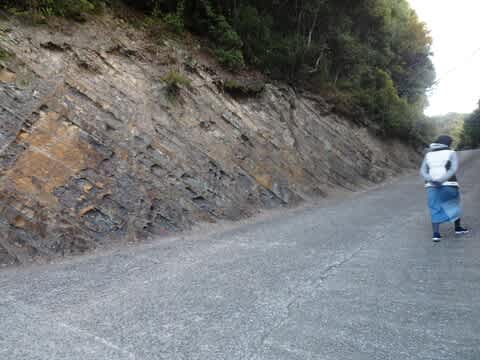 そしてこの辺りの地層が見える場所があって。斜めっててすごいなぁ