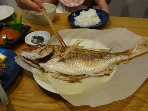 お料理上手なお婿さんが、鯛をさばいて焼いてくれました。