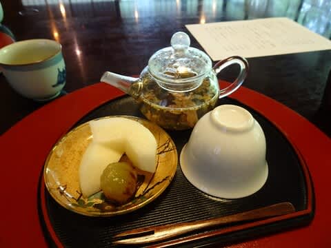 デザートは、フルーツ。そして私はハーブティをチョイス。夫はコーヒー。