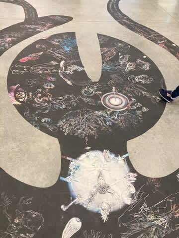 中へ入ってみると、床には素敵な絵画が描かれています。