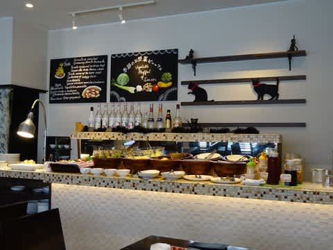 このレストランは、猫グッズや猫の本があふれているんですよ。