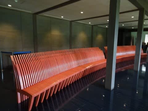 遥望館の中に入ると、映像の上映までこんな素敵な椅子で待ちます。