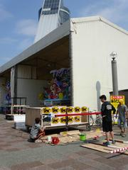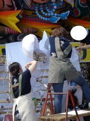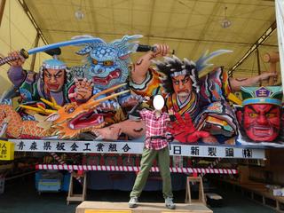 それから海の方へ行って、ホテルで教えてもらった8/2から始まるねぶた祭りの山車の製作現場へ。