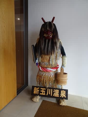 食後に、tontonは朝散歩。玄関には、なまはげさん