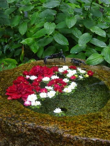 そして、庭師さんが浮かべてくれるお花達の心憎い演出