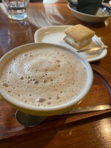 tontonはスパイスの効いたチャイ。レーズンサンドは、なんと豆乳のクリーム。