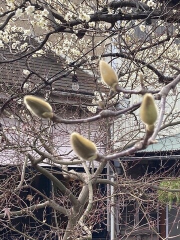 隣にはモクレンの木もありました。まだまだ蕾が固いようです。