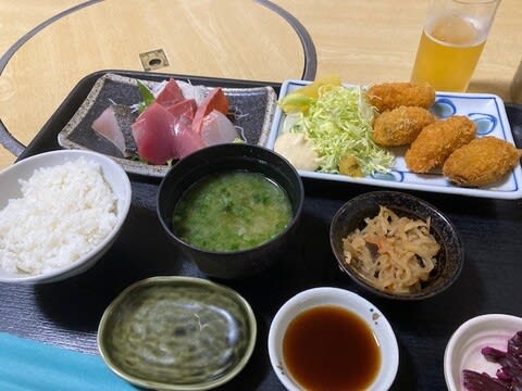 tontonは、お刺身と牡蠣フライの定食にしたのだけど、フライはまだ重たいなと思って、