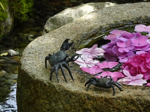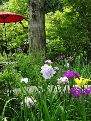 密を避けて朝一で。一歩庭内へいると、紫陽花にあやめに桔梗と、まるで夢のような世界です。
