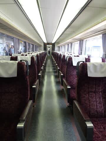 ゆったりソファで座り心地も良いです。これから飯田まで2時間半車窓を楽しみます。