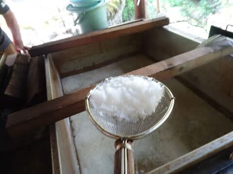 チェックアウト前に、宿の中にある塩の製造現場を見せていただきました。
