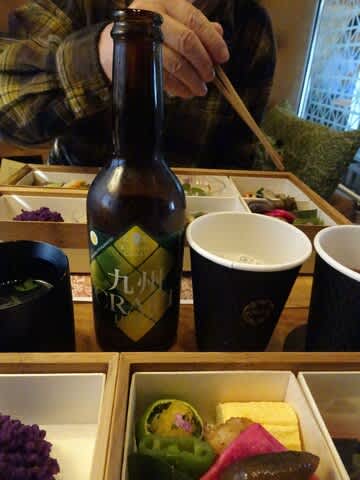 温かいお吸い物も。ワンドリンク付きですが、地ビールも買ってきちゃいました。