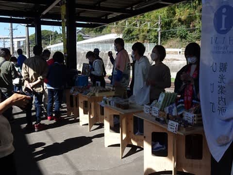 この駅では、お土産物を地元の方々が売りに来て下さっています。