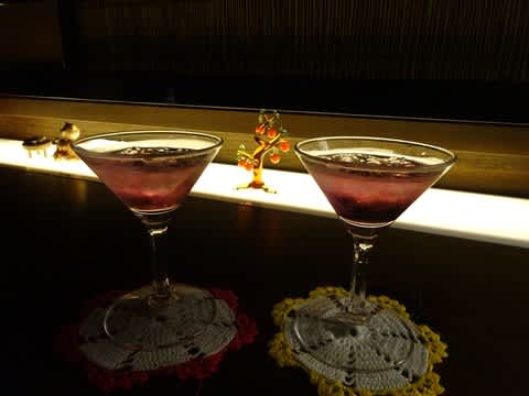 と、その前に、素敵なカウンターで、食前酒を頂き、