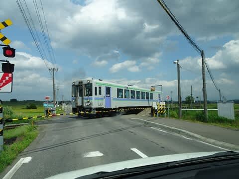 おや。JR北海道の電車が横切ります。かわいいな。