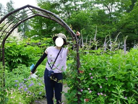 なんとこのお庭のガーデンデザイナー上野砂由紀さんが撮影中でした。