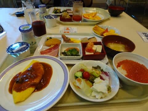 新富良野プリンスホテルから美しい日の出を見て、朝風呂でまったりして、朝食です。