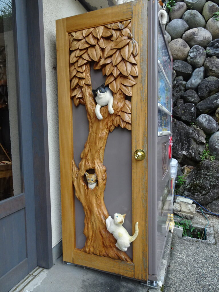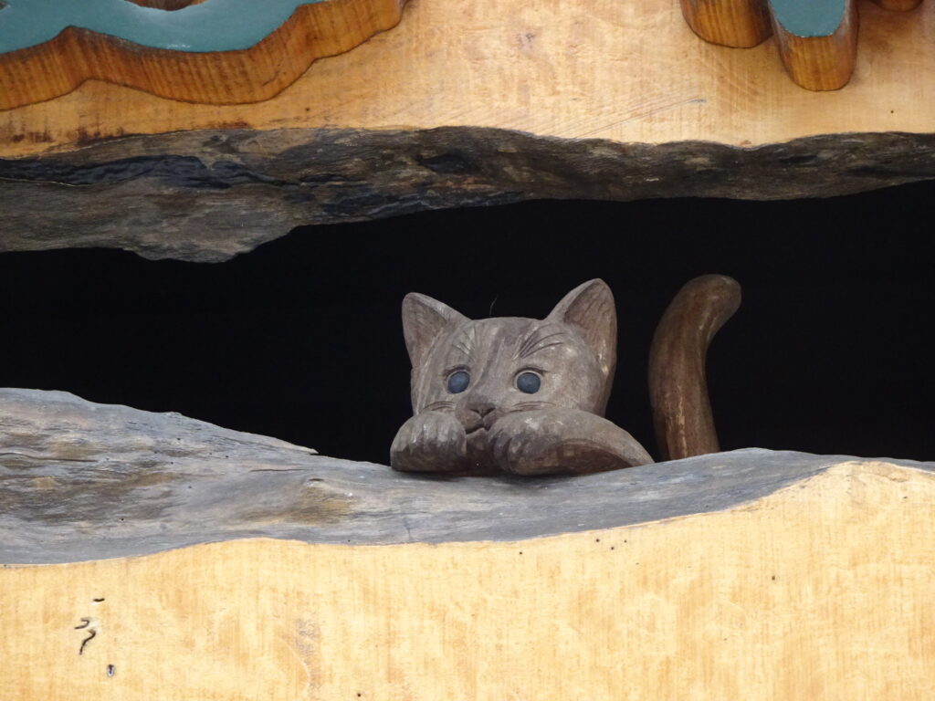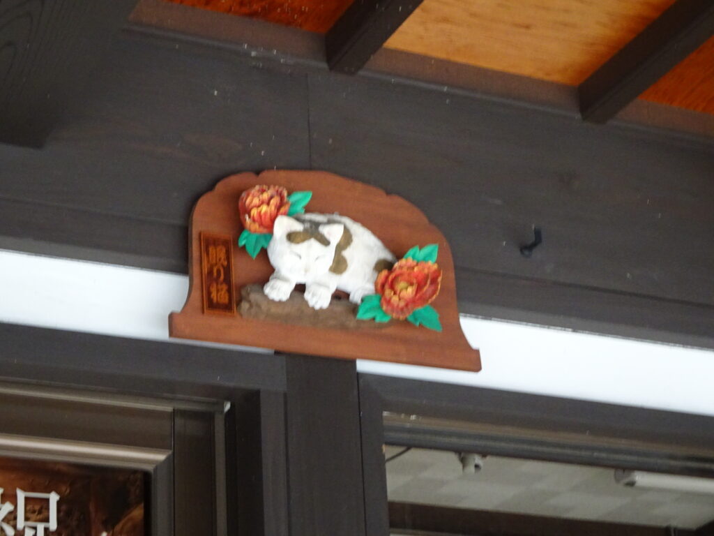 まずは見てください。この看板。よく見ると、看板の隙間に小さな猫ちゃんが。