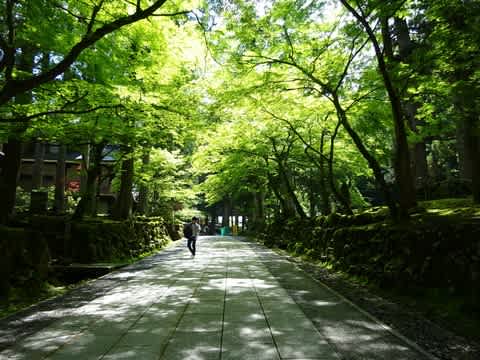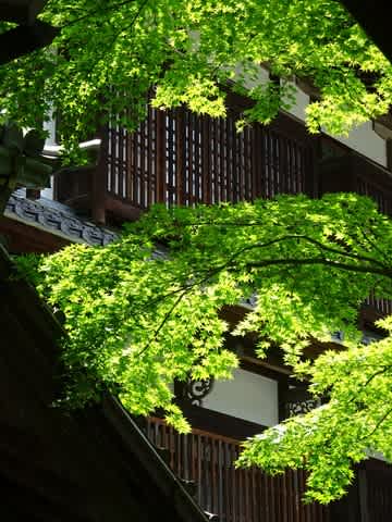 青葉と建物が美しい。和の建築は緑がよく合います。