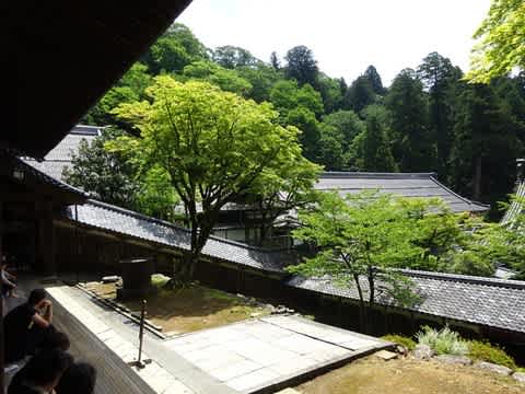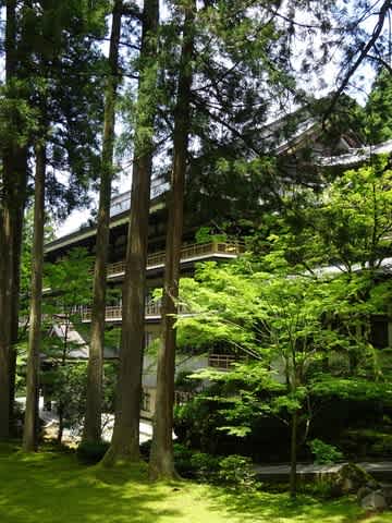 若々しいお坊さんたちの声と緑と和建築。見事な調和です。