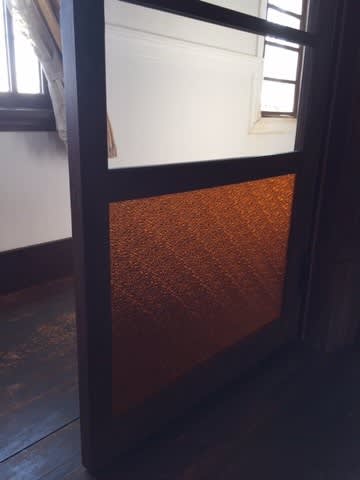 入口のガラスが色ガラスになってます