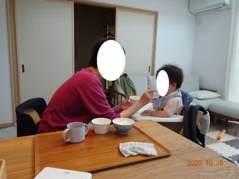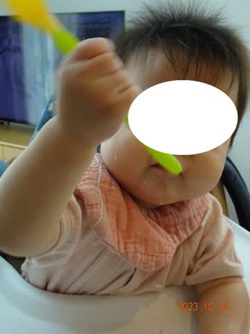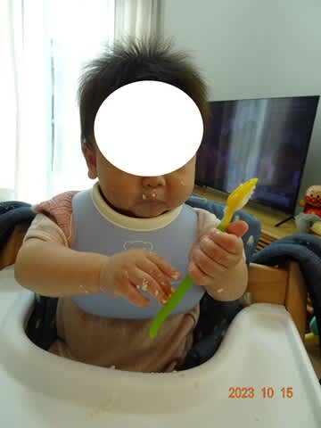自分で食べたいお年頃だよね。自分で食べると美味しいんだよね。よしよし。