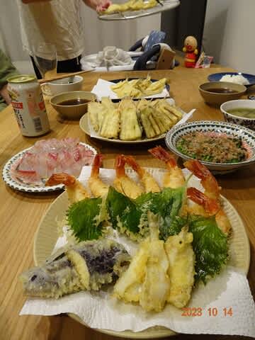 天ぷらは、市場で買ってきたキスやエビを捌いて揚げてくれたんですよ。