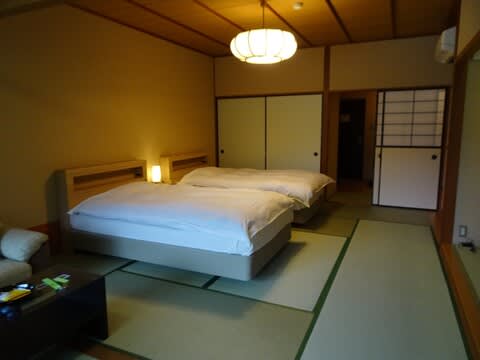 今日のお宿はこちらです。お部屋はこちら