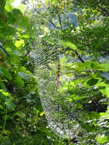 わ~綺麗 蜘蛛の巣がまるでレースのよう。