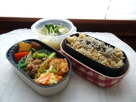 おにぎりは家で握って、前の晩の残りもタッパーに入れて。