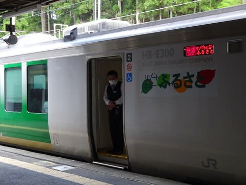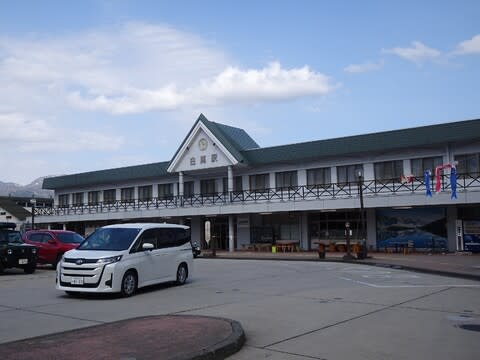 代替輸送のバスで北小谷駅近くの道の駅まで戻ります。