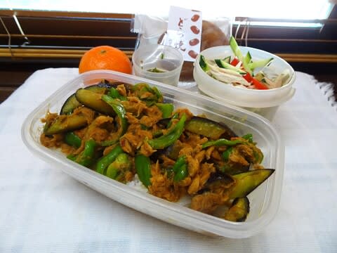 ・ツナとピーマン・ナスの甜面醤炒め丼
