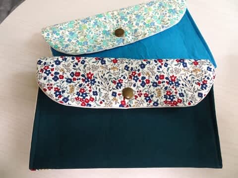 今朝6時起きで作っていたのが、このポーチ2つ。