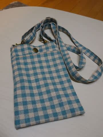 以前作ったのは、携帯とお財布を入れるとぎちぎちなので、もう一回り大きいサイズで作りました。