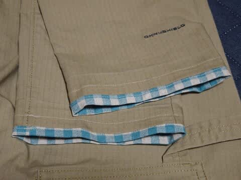 この生地、娘の携帯ポシェットを作った生地なんだけど、このパンツにあっているかなと思って。
