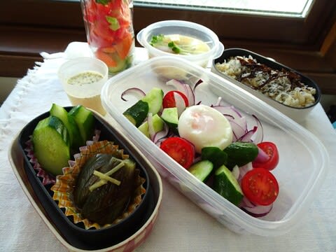 半熟卵は、味付たまごを作るときに1個皮むきを失敗したので、それを利用。