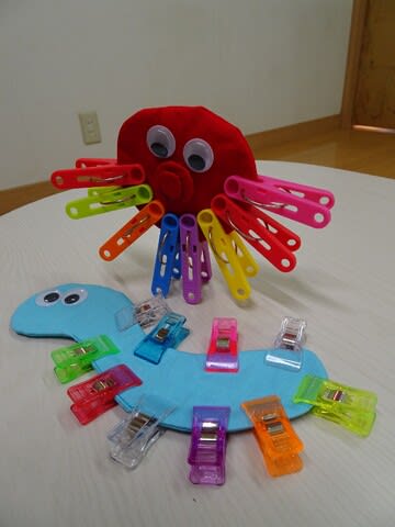 洗濯ばさみタコちゃんと、クリップ毛虫。