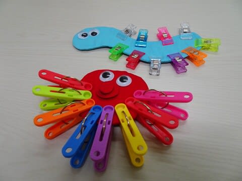 2歳の孫が洗濯ばさみやクリップを挟んだり外したりして遊ぶおもちゃです。